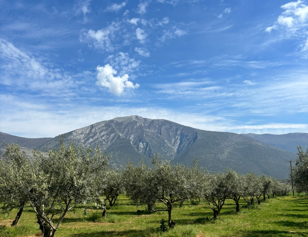 Unser Olivenöl stammt aus Charitomeni, einem kleinen Bergdorf mit einzigartigem mediterranem Mikroklima. Die Kombination aus kühlen Nächten, intensiver Sonne und dem Schutz der umliegenden Berge schafft ideale Bedingungen für den Olivenanbau.